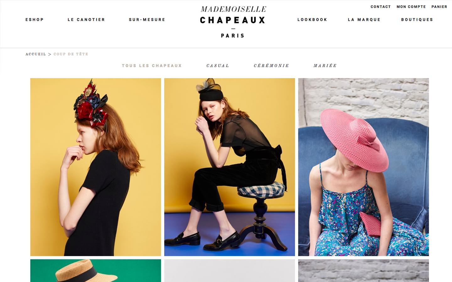 Mademoiselle Chapeaux est une société de création et confection de chapeaux sur Paris. Le site Web de présentation a été conçu avec WordPress et la boutique en ligne avec Prestashop. Le défi principal était de préserver l'identité ainsi qu'une navigation claire et fluide entre les deux plates-formes.